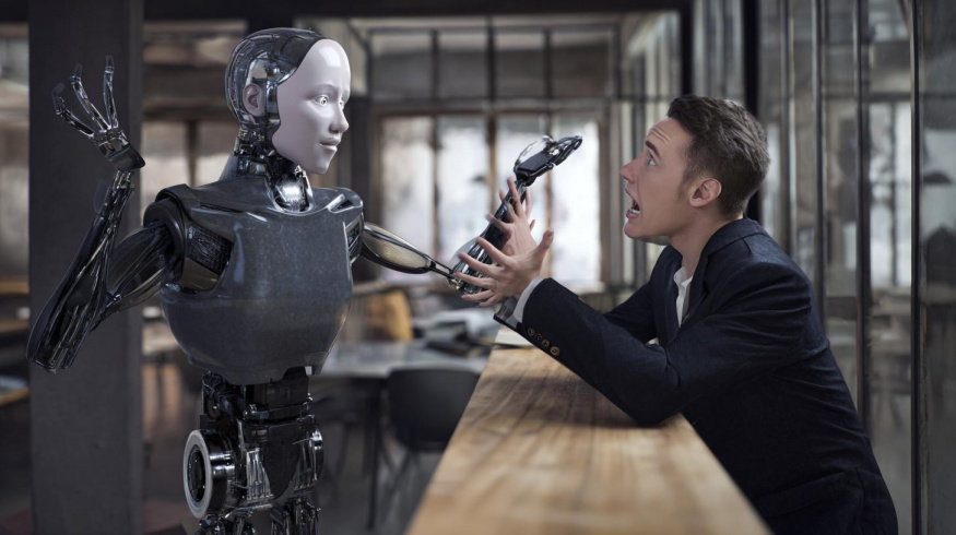 Novinář hádající se s robotem (ilustrační obrázek)